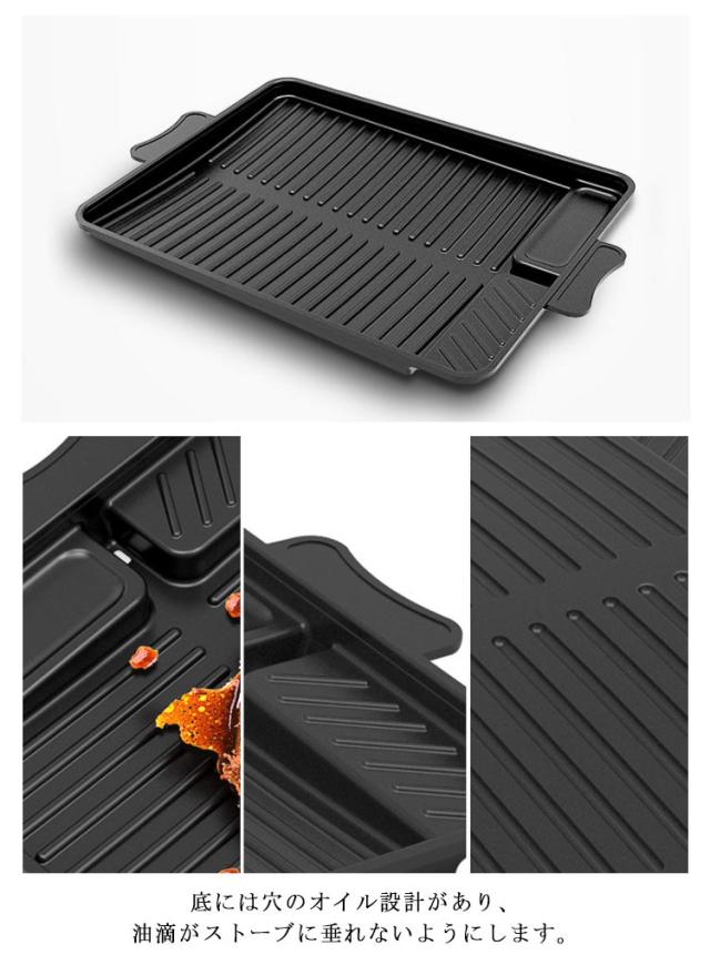 サムギョプサル 鉄板 プレート カセットコンロ用 焼肉プレート 韓国焼肉料理 焼肉鉄板 ヘルシー 焼肉グリル 溝付き 焼肉グリル 焼肉鉄板 カセットコンロ 対応 油の自動排出構造 カロリーオフ プレート 韓国焼肉料理 マルチ焼き 黒 ブラック 韓国食器