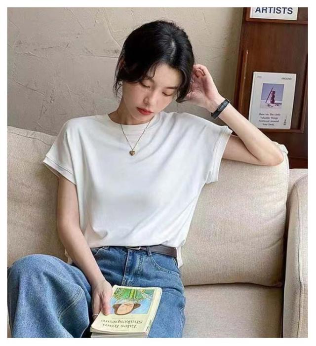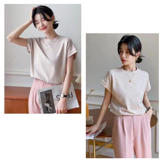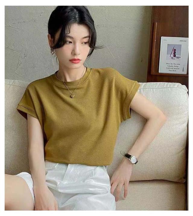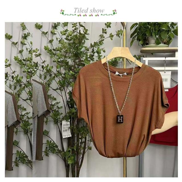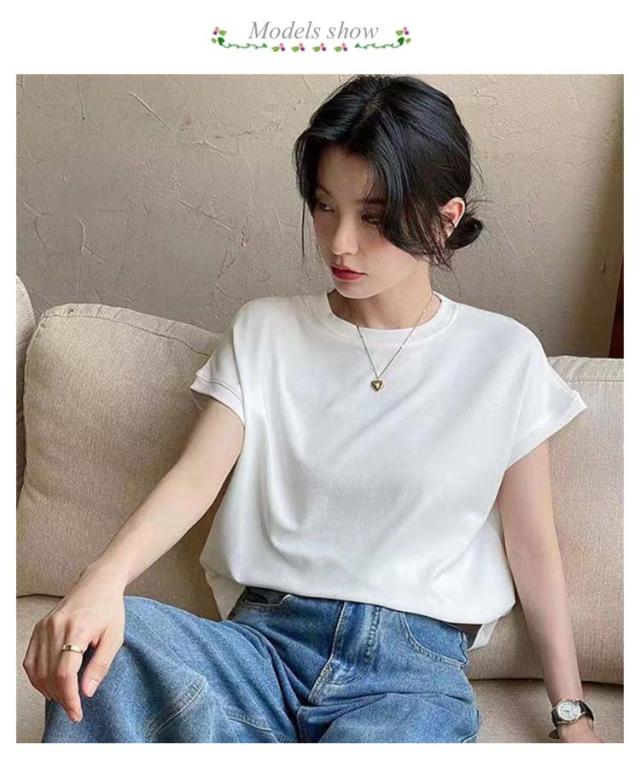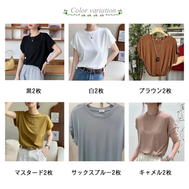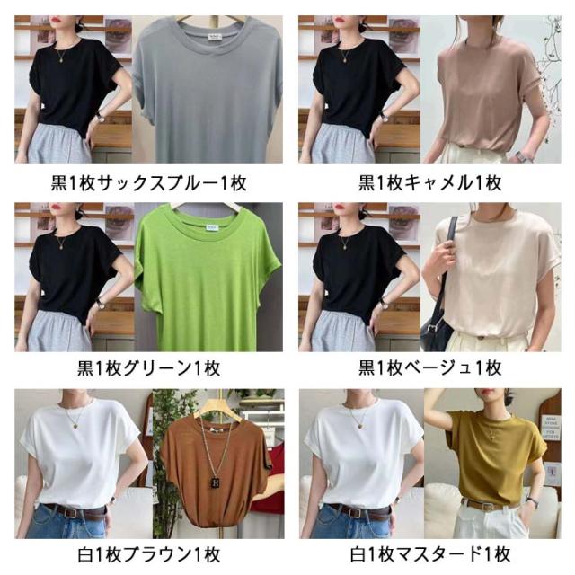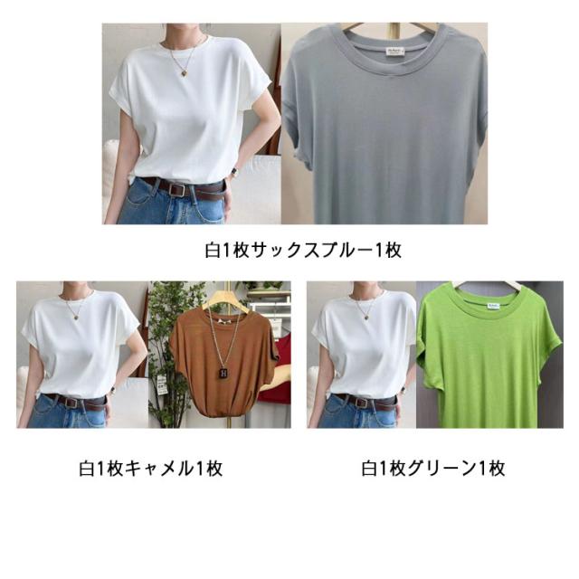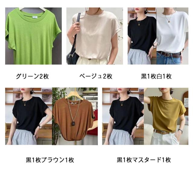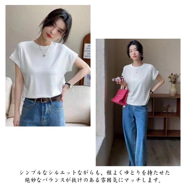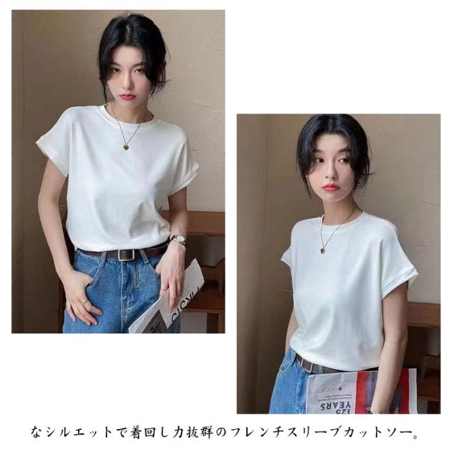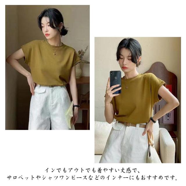 Tシャツ レディース フレンチスリーブ 半袖 tシャツ 白Tシャツ ノースリーブ カットソー トップス 春 夏服 大きいサイズ 体型カバー 無地 モックネック クルーネック 半袖 Tシャツ カジュアル オフィス