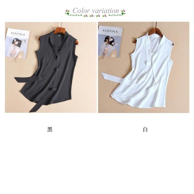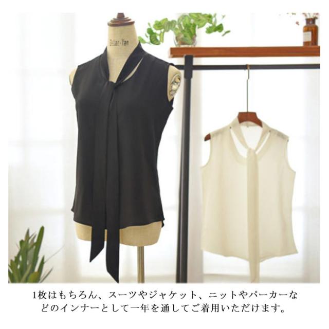 ノースリーブ ブラウス シャツブラウス ボウタイブラウス リボン タンクトップ レディース 無地 ビジネス オフィス ホワイト ブラック スーツ インナー