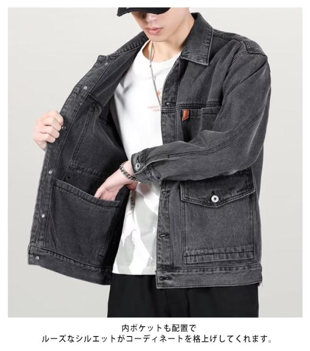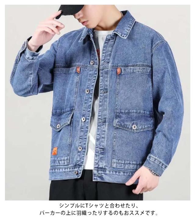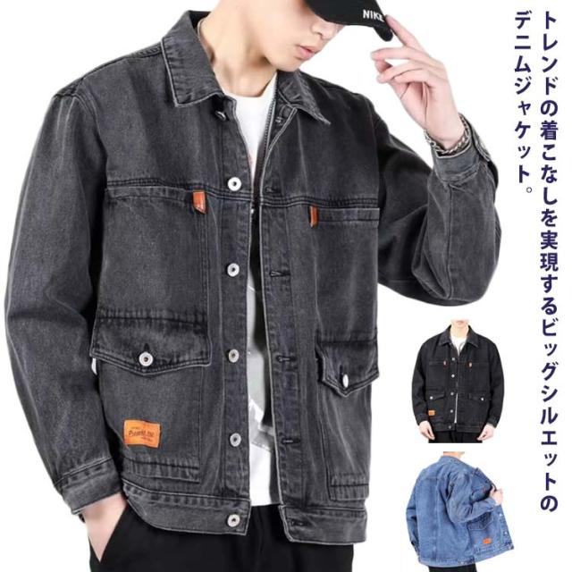 デニムジャケット Gジャン メンズ ビッグシルエット ジージャン 送料無料 メンズ デニム ヴィンテージ加工 おしゃれ 大きめ ゆったり トレロ アウター カジュアル ストリート メンズファッション 春 秋 20代 30代 40代