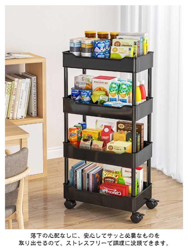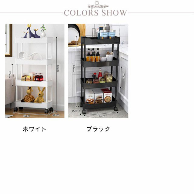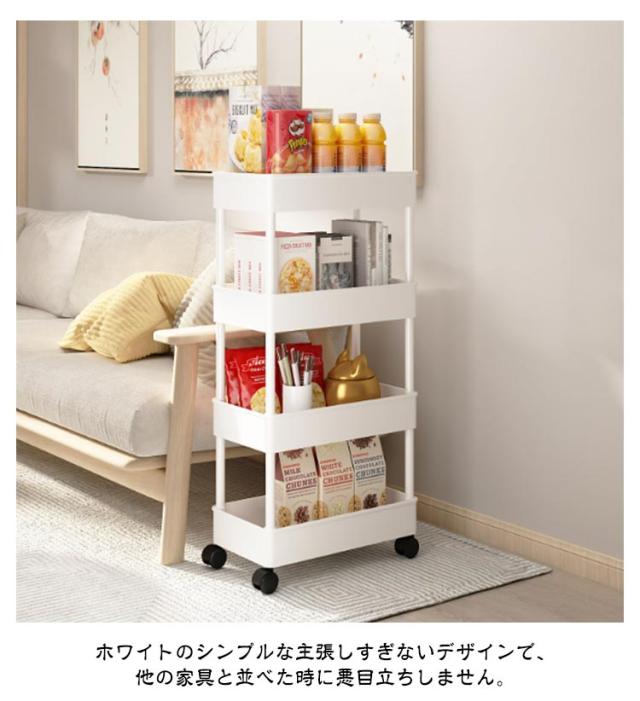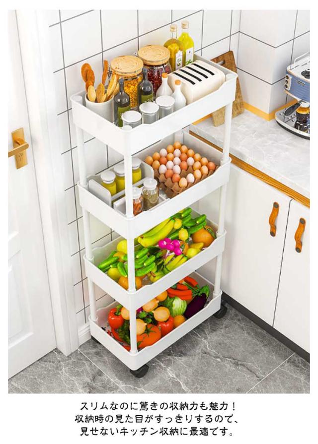 | 4段-幅15cm キャスター付きストッカー 収納時の見た目がすっきりする! ちょっとした隙間が統一感ある収納スペースに早変わり! 幅わずか15cm!収納はできるだけ目立たないよう、バレないようにしたいもの。 スリムなのに驚きの収納力も魅力! 収納時の見た目がすっきりするので、見せないキッチン収納に最適です。 頻繁に取り出すアイテムもストレスフリーで手に取れます。 落下の心配なしに、安心してサッと必要なものを取り出せるので、ストレスフリーで調理に没頭できます。 ホワイトのシンプルな主張しすぎないデザインで、他の家具と並べた時に悪目立ちしません。 キッチン・リビング・クローゼット収納・納戸の収納棚・玄関収納・子供部屋など、色々なシーンで使える便利なスリムトローリーです。 | |