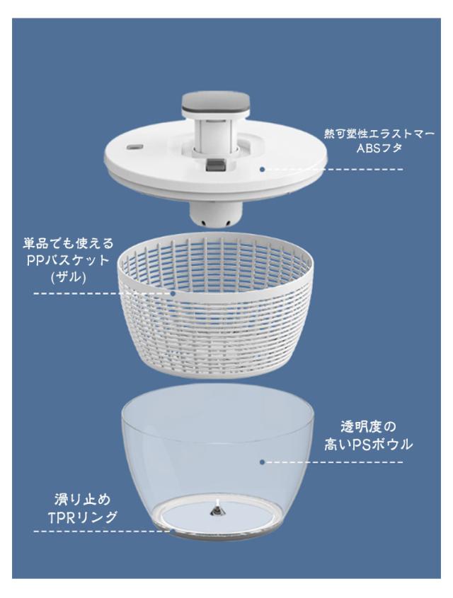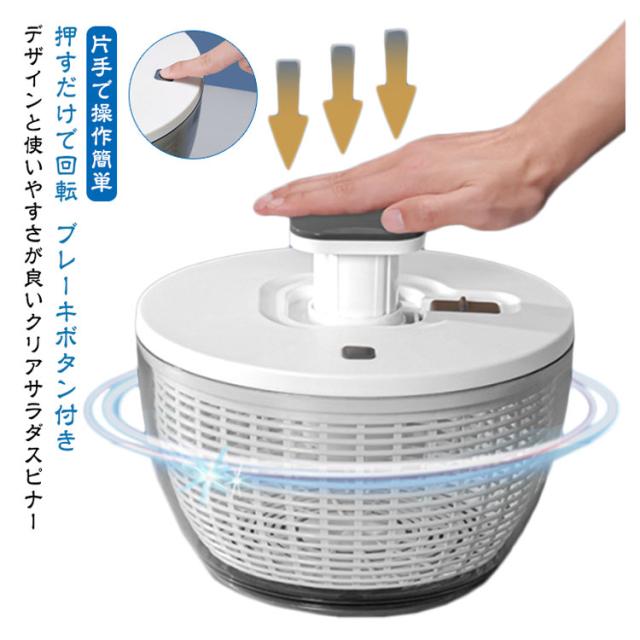 | 【デザインと使いやすさが良いクリアサラダスピナー】 【片手で操作簡単】 【押すだけで回転 ブレーキボタン付き】 | |