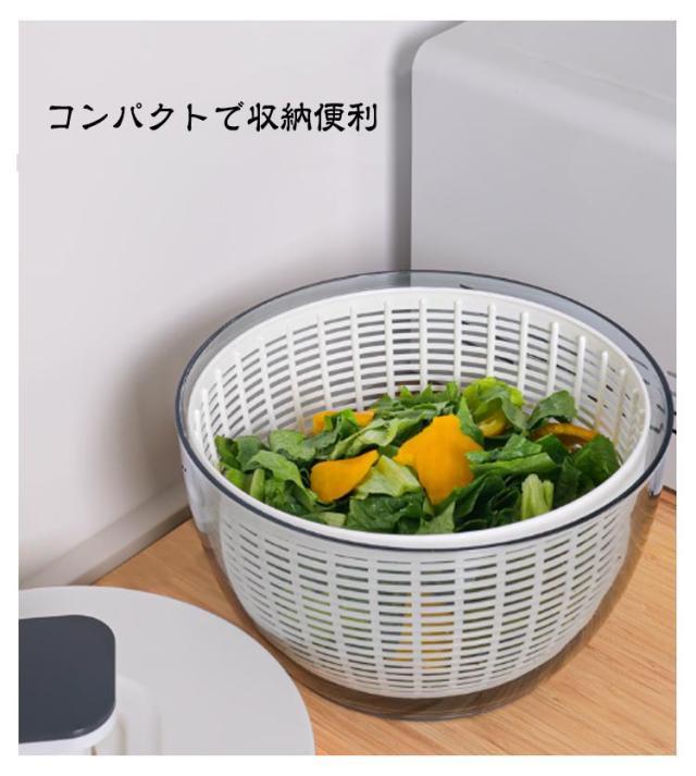 クリアサラダスピナー 野菜水切り 水切りかご スピナー プッシュ式 サラダスピナー コンパクト 6リットル ボウル 分解 可能 水切り器 調理器具 キッチンツール キッチン用品 キッチン 籠 かご 保存容器 料理 サラダ 野菜 食材 水洗い バスケット カゴ ボウル 回転