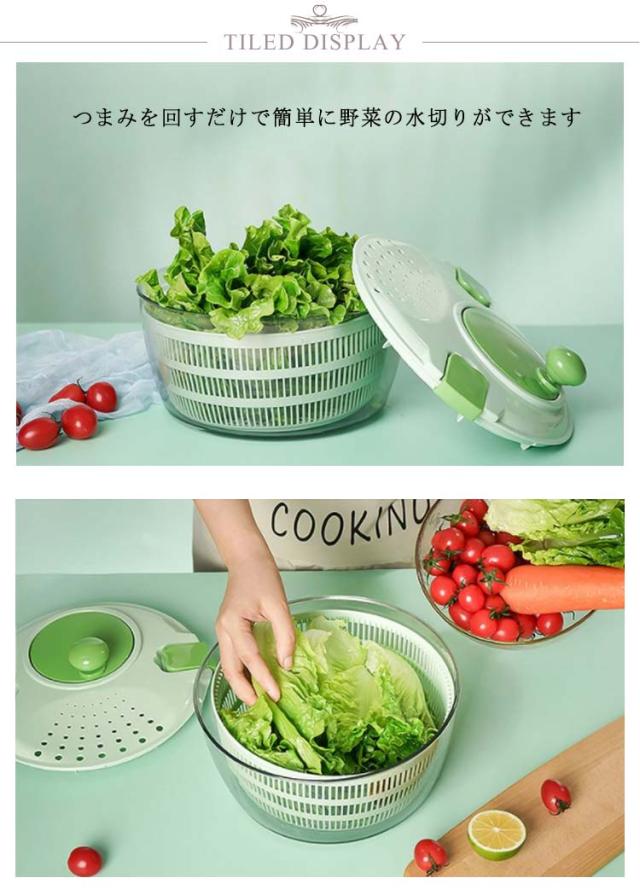 サラダスピナー 野菜 水切り 器 野菜水切り器 サラダ 水切り かご カゴ 4L 4000ml 大容量 野菜シャキ キッチン 便利グッズ 調理小物 回転 ビュンビュン ブンブン 回る 遠心力 野菜回転水切り器 一人暮らし 送料無料