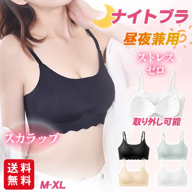 シームレスブラ ナイトブラ スカラップ 美胸 ブラジャー パッド付き ノンワイヤー 昼夜兼用 インナー スポーツ ブラ 下着 バストアップ レディース 女性 肌着 取り外し可能