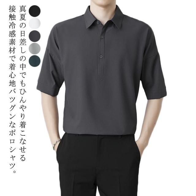 接触冷感 ポロシャツ メンズ 半袖 ポロシャツ 夏 ひんやり 涼しい カットソー ポロ襟 トップス 吸汗速乾 涼感 通気性 ゴルフウェア 無地 シンプル クールビズ ビジネス カジュアル 送料無料