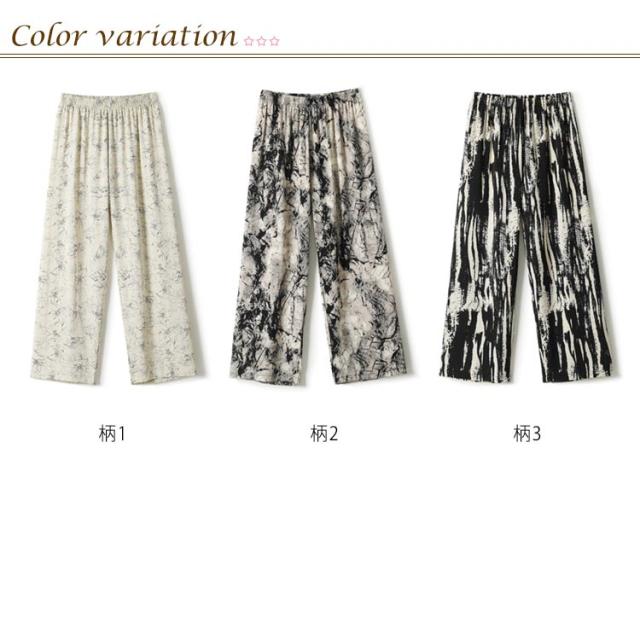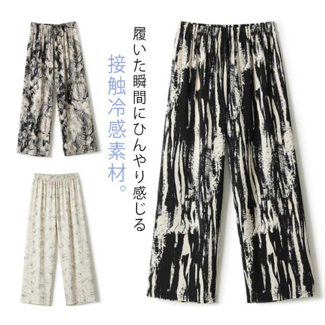 接触冷感 ワイドパンツ 総柄 レディース 柄パンツ タイダイ柄 夏 サマー ロング パンツ 薄手 涼しい ルームウェア 部屋着 イージーパンツ ゆったり 体型カバー ハイウエスト ゴムウエスト ひんやり カジュアル かわいい おしゃれ 【送料無料】