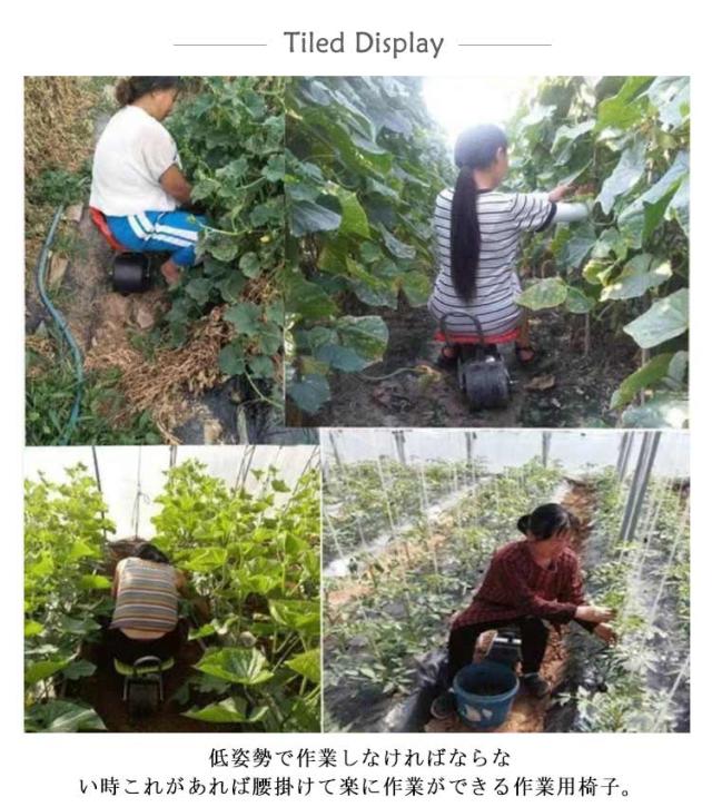 | 折りたためる背もたれ付き&360度回転シートで作業しやすい♪ 畦間での草取り、間引き、収穫作業などに最適の園芸用カート。 低姿勢で作業しなければならない時これがあれば腰掛けて楽に作業ができる作業用椅子。 ガーデニング作業や畑仕事で中腰や腰をかがめたりする作業の時、膝や腰の痛みや疲れを軽減し、中腰作業の疲れを解消します。 シートは360度回転するので、作業場所を選びません。また、シート(座面)の高さは調節できるから、自分に一番作業しやすい高さで座れるから、長時間の作業でも快適にご使用いただけます 編みこみ模様の座面は穴が沢山あり、通気性抜群で、暑い季節も蒸れずにとても快適な座り心地◎ ワイドな安定性抜群で快適に作業できます。 軽量&持ち手付きなので、持ち運びも便利の腰掛け台車。 | |