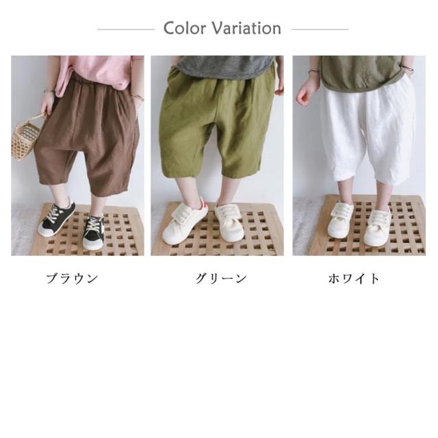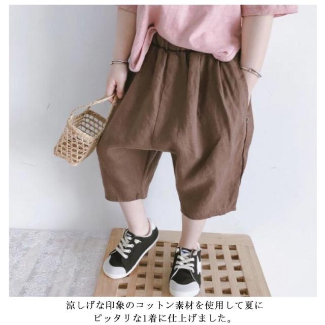 7分丈パンツ キッズ 子ども バルーンパンツ クロップドパンツ ハーフパンツ 半ズボン 男の子 女の子 薄手 ボトムス ズボン 綿 コットン ジュニア 子供服 こども 子ども服 ベビー服 保育園 小学生 通園 通学 お揃い シンプル 無地 100 110 120 130 140 150cm 送料無料