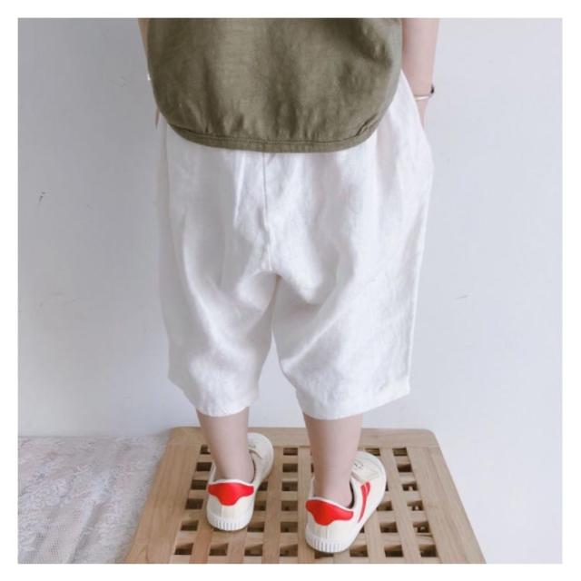 | 薄手のコットン素材を使用した7分丈パンツ。 涼しげな印象のコットン素材を使用して夏にピッタリな1着に仕上げました。 ウエストはゴム仕様となっており、お子様のお着替えも簡単でママもキッズもニコニコ♪ シンプルで合わせやすいデザインなので、お手持ちのトップスとのスタイリングを楽しんでいただけます。 | |