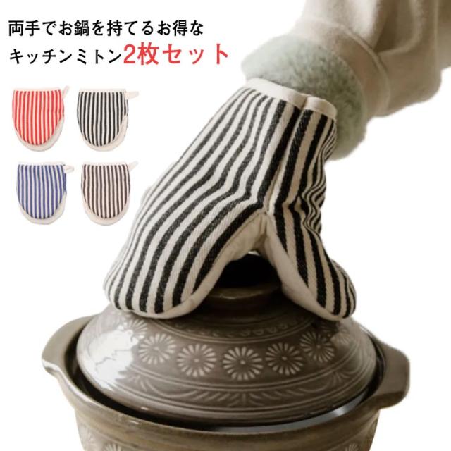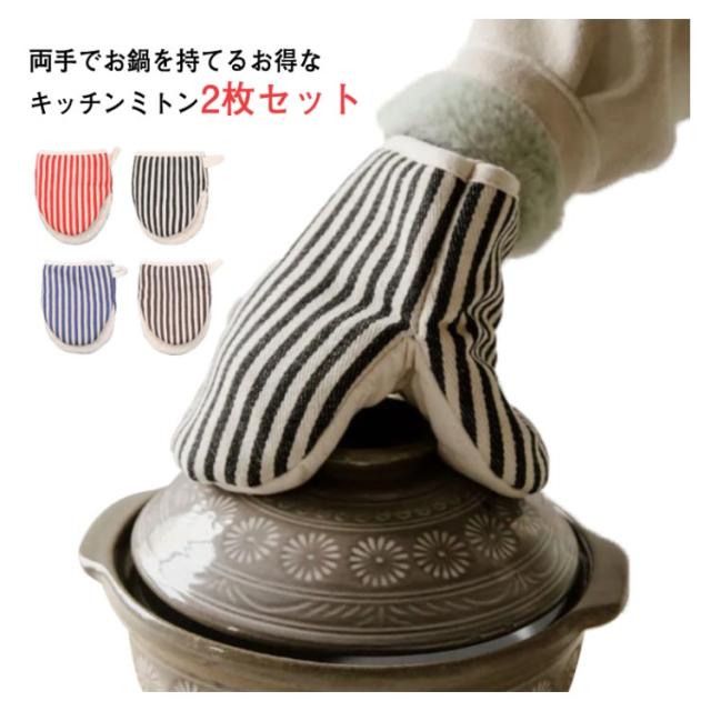 耐熱 キッチンミトン おしゃれ 2個セット 綿麻 キッチン ミトン 鍋つかみ オーブンミトン 鍋掴み 耐熱ミトン 鍋 つかみ 北欧風 厚手 オーブン ミット なべつかみ ストライプ柄 可愛い ギフト プレゼント ナチュラル 送料無料