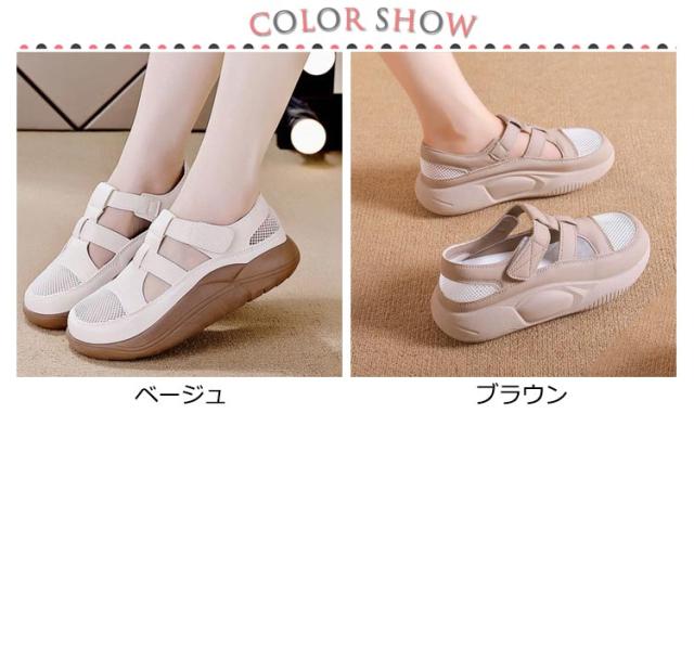 サンダル 4cmヒール スニーカーサンダル 本革 厚底スニーカー 牛革 厚底 レディース ナースシューズ 外反母趾 スリッポン 靴 シューズ 軽量 軽い コンフォートシューズ レディース スニーカー 痛くない マジックテープ式 ウォーキングシューズ 疲れない 歩きやすい 春 夏 秋