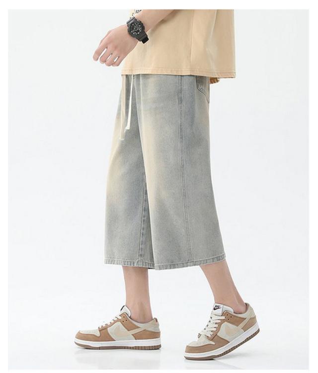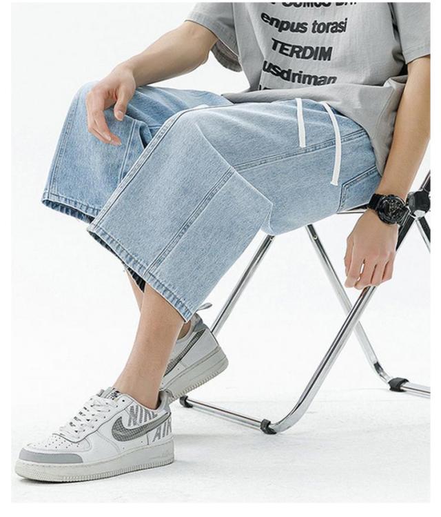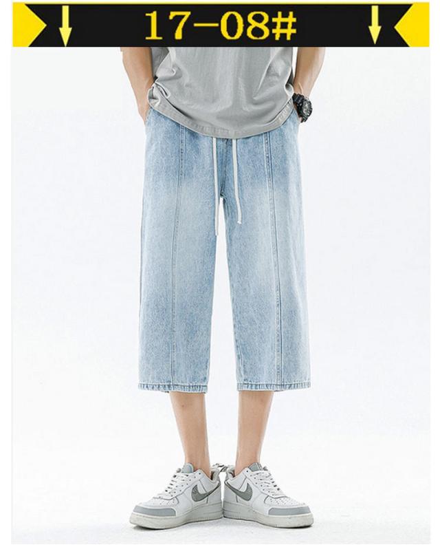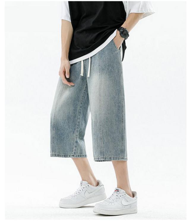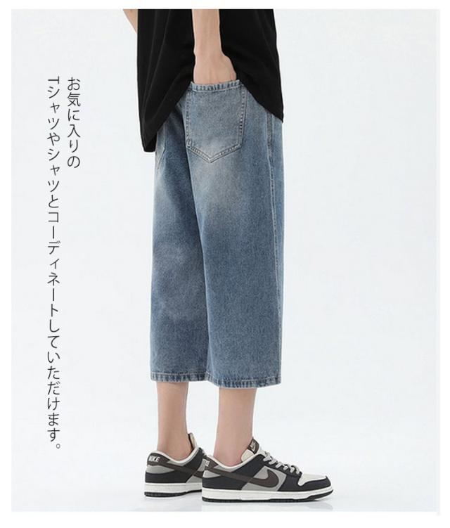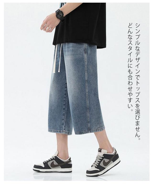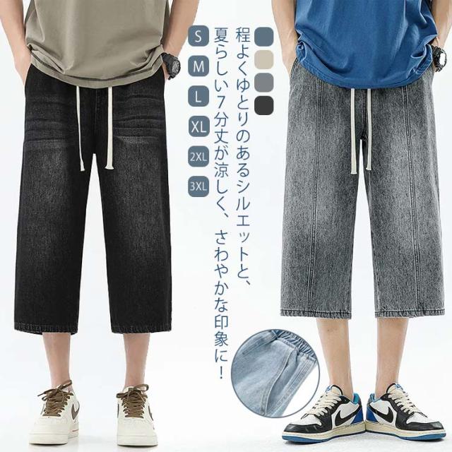 デニムパンツ ワイドパンツ メンズ 7分丈 バギーパンツ カジュアル ストレート 春夏 秋 ジーンズ おしゃれ 半ズボン ジーパン 大きいサイズ 太め ゆったり 体型カバー デニムパンツ イージーパンツ ゴムウエスト クロップドパンツ 快適 ギフト 送料無料