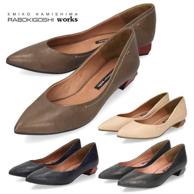 パンプス ローヒール 本革 ラボキゴシ ワークス 12679 ブラック ベージュ ネイビー ブラウン フラットパンプス レディース 靴 日本製 RABOKIGOSHI works