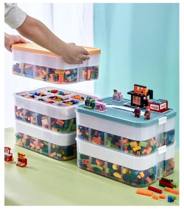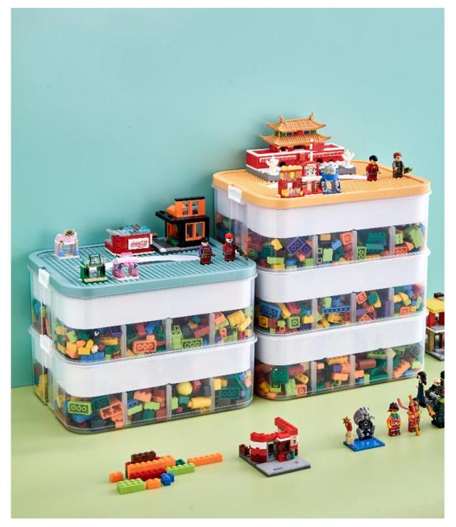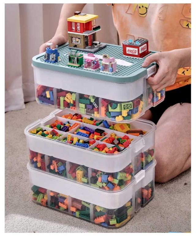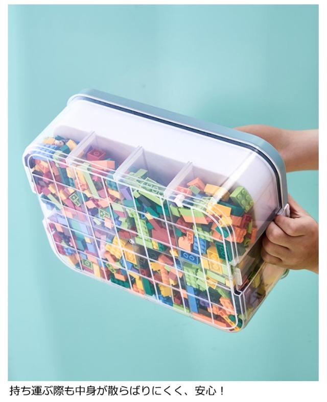 ブロック 収納 ケース 大容量 3段式 仕切りトレー付き おもちゃ収納 収納ボックス 展示台コレクション 小物収納 重ね合わせる 重ねられる 取手付き 持ち運びやすい フタ付 おしゃれ 工具箱 小物入れ ビーズ収納