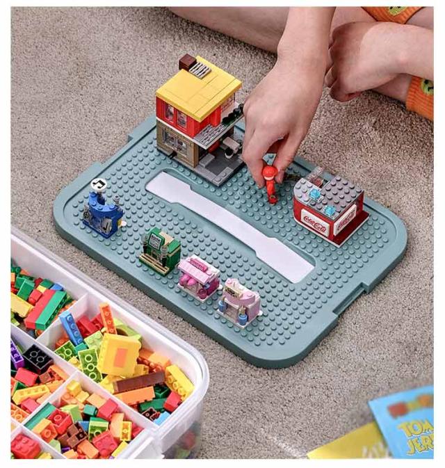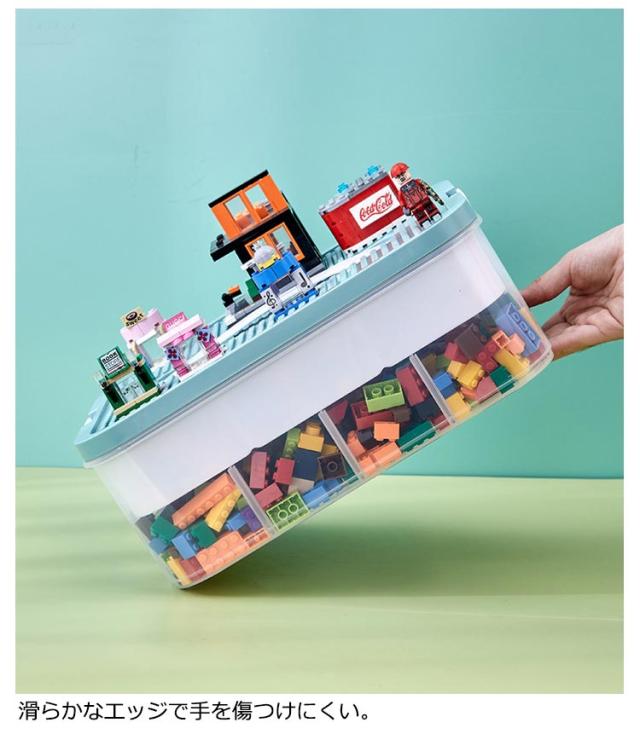| 大容量で持ち運び便利な持ち手付き3段式収納ケース。 1段ごとに仕切りトレー付きでたっぷりできるながら、細かいパーツも種類ごとに収まります。 天板にをつけて遊ぶこともできます。 持ち運ぶ際も中身が散らばりにくく、安心! 滑らかなエッジで手を傷つけにくい。 | |