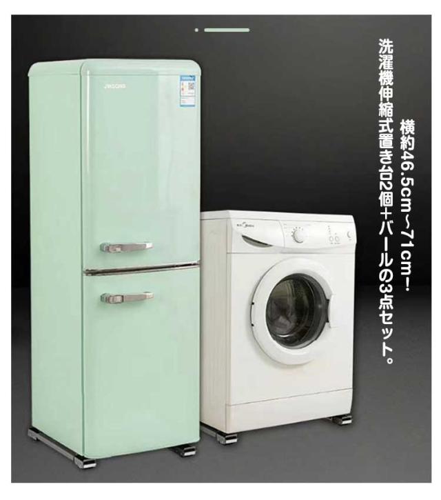 洗濯機 置き台 キャスター 冷蔵庫 バール付き 3点セット 家具 移動 ロック 360度回転式 輪 洗濯機スライド台 キャスター台 かさ上げ台 引っ越し 46.5〜71cm調節可能 伸縮 ドラム式洗濯機 大型家具 家電 運搬用 移動台 ローラーキャリー
