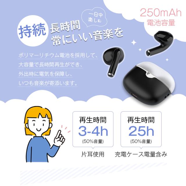 完全ワイヤレスイヤホン Bluetooth 5.3 インナーイヤー型 TWS ノイズキャンセリング クリア通話 HiFi 高音質 重低音 250mAh充電ケース 【PL保険加入済み製品・安心】