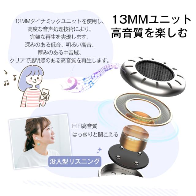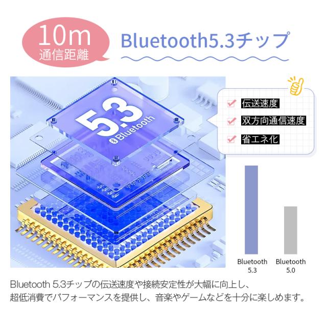 【更に安定したBluetooth5.3通信】音楽を快適に楽しみたい、スムーズな通話をしたいには、接続が安定した音声の遅延が少ない本製品をおすすめします。本製品には最先端のBluetooth規格のバーション5.3を採用しており、接続安定性が高く、音飛びや途切れが起きにくくなり、音声遅延を効果的に抑制されました。左右側とも独立通信チップを搭載し、片側だけでも両側同時でも使用でき、使い勝てがいいです。