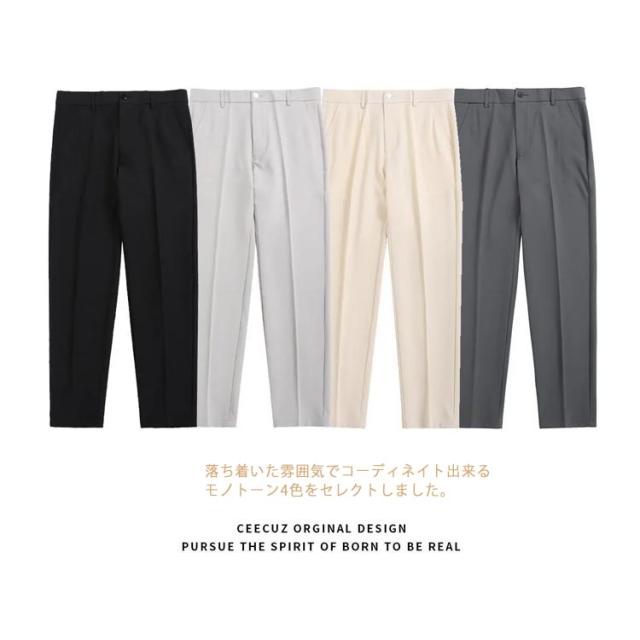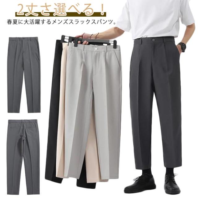 2丈さ選べる!ビジネスパンツ メンズ テーパード パンツ スラックス 通勤パンツ アンクルパンツ ビジネススラックス 九分丈 ビジネス カジュアル 美脚 春夏秋 スリム 無地 キレイめ カジュアル