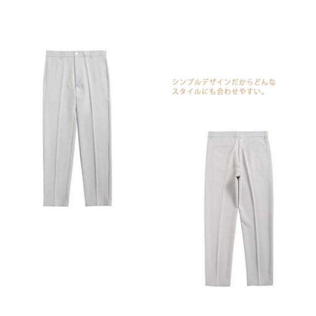 | 2丈さ選べる!春夏に大活躍するメンズスラックスパンツ。 スリムなサイズ感でも膝を曲げる動作もストレスフリーな着用感! スーツ生地より厚みがある上品な生地感で、ネットに入れてお手軽に家庭でお洗濯も可能。 落ち着いた雰囲気でコーディネイト出来るモノトーン4色をセレクトしました。 シンプルデザインだからどんなスタイルにも合わせやすい。 | |