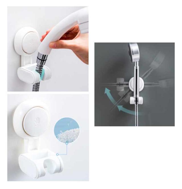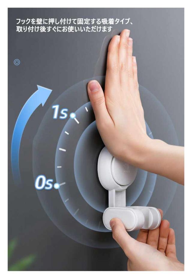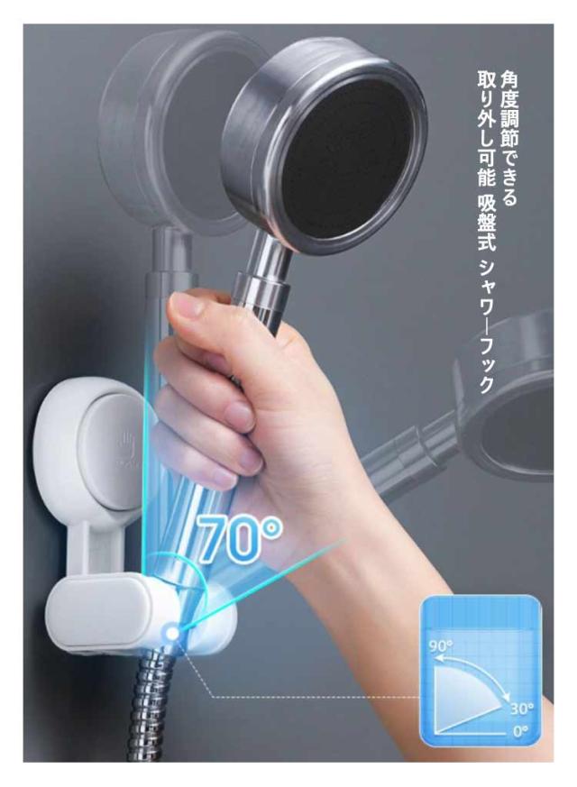| 工事不要!取り付けカンタン 浴室用ラック 幅広いサイズに適応・はめ込み部分は約18mm〜23mmの間に適応 角度調節できる 取り外し可能 吸盤式 シャワーフック フックを壁に押し付けて固定する吸着タイプ、取り付け後すぐにお使いいただけます | |