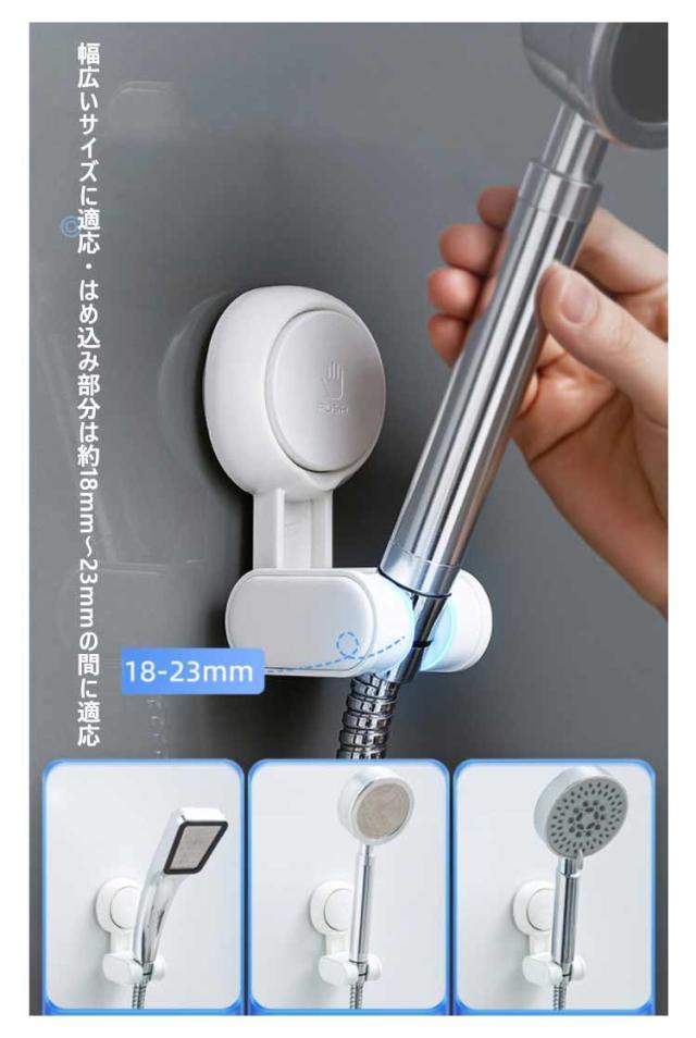 シャワーフック シャワーヘッドホルダー 18mm~23mm 後付け 交換 吸盤フック 簡単取付 ヘッド掛けスタンド バス収納 角度調節 風呂 吸盤 ホルダー 穴あけ不要 壁用 壁掛け 吸盤式シャワーホルダー 取り外し可能 吸盤 強力 ネジ止め不要 粘着式 工事不要 バス用 送料無料