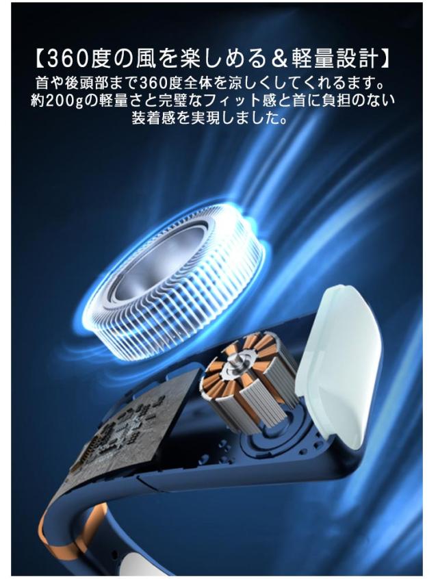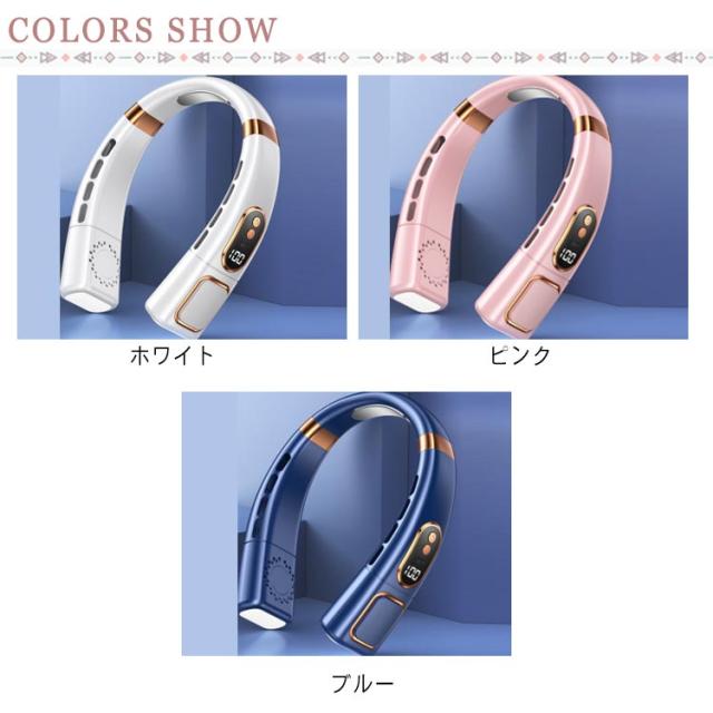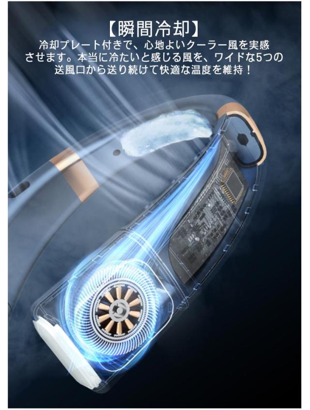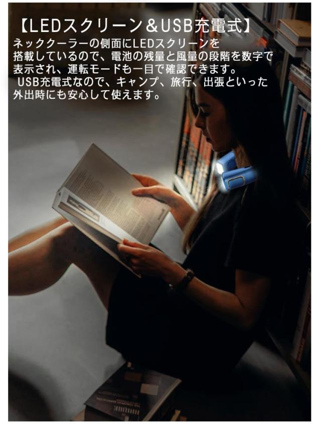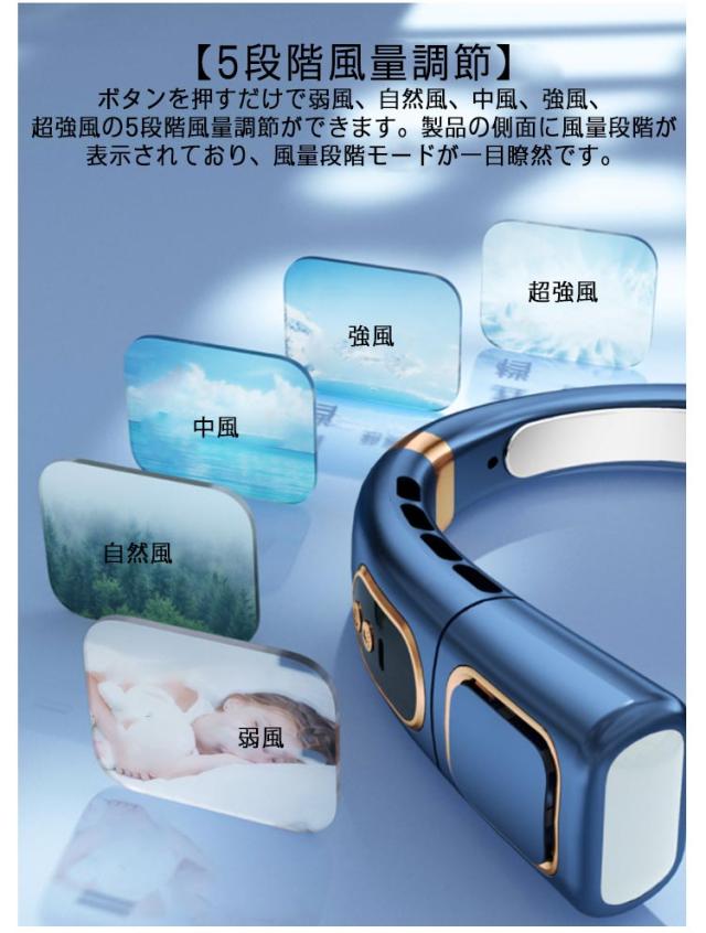 | 【ネック扇風機】【瞬間冷却】【5段階調節】【長時間連続稼働】【ライト付き】 【瞬間冷却】 冷却プレート付きで、心地よいクーラー風を実感させます。本当に冷たいと感じる風を、ワイドな5つの送風口から送り続けて快適な温度を維持! 【5段階風量調節】 ボタンを押すだけで弱風、自然風、中風、強風、超強風の5段階風量調節ができます。製品の側面に風量段階が表示されており、風量段階モードが一目瞭然です。 【LEDスクリーン&USB充電式】 ネッククーラーの側面にLEDスクリーンを搭載しているので、電池の残量と風量の段階を数字で表示され、運転モードも一目で確認できます。 USB充電式なので、キャンプ、旅行、出張といった外出時にも安心して使えます。 【羽根なし】 安全を配慮した設計で羽根がありません。指や髪の毛が誤って巻き込まれる心配がないため安心です。子供や高齢者にも安心して使用できます。 【2000mAh大容量電池内蔵】 大容量2000mAhのリチウムイオンバッテリーを内蔵しており、長時間の外出時も快適にお過ごしいただけます。 【360度の風を楽しめる&軽量設計】 首や後頭部まで360度全体を涼しくしてくれるます。 約200gの軽量さと完璧なフィット感と首に負担のない装着感を実現しました。 【多用途に大活躍、いつもの便利】照明機能も付き!ネックライトにもなります! | |