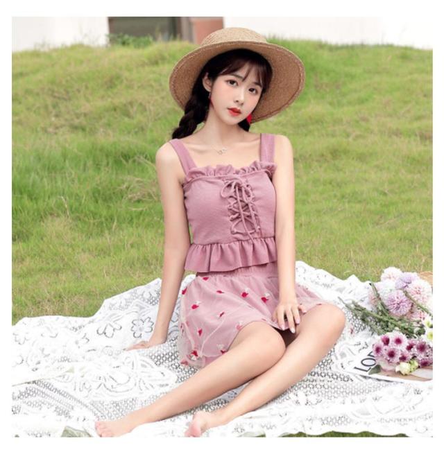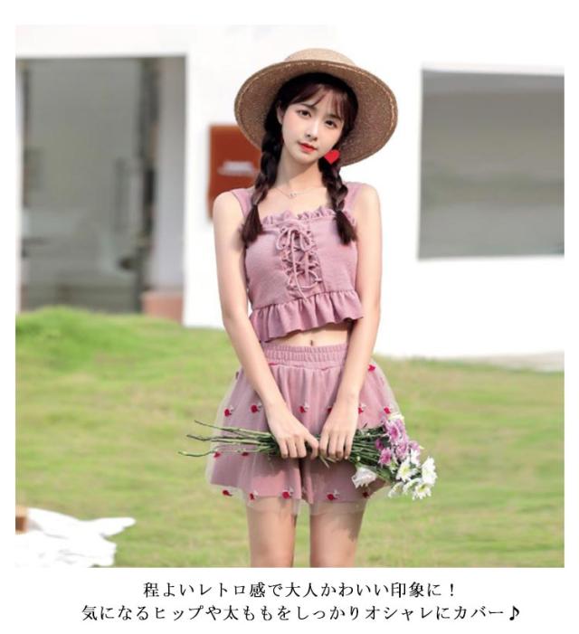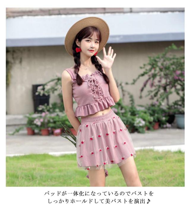 水泳 みずぎ 水着 高校生 中学生 女の子 女子 ビーチ 海 プール フリル 10代 20代 送料無料 水泳 みずぎ タンキニ ビキニ レディース水着 可愛い 体型カバー 学生 スイムウェア 大人 水着 韓国 水着 露出控えめ セパレート 上下セット スカート ピンク 黒