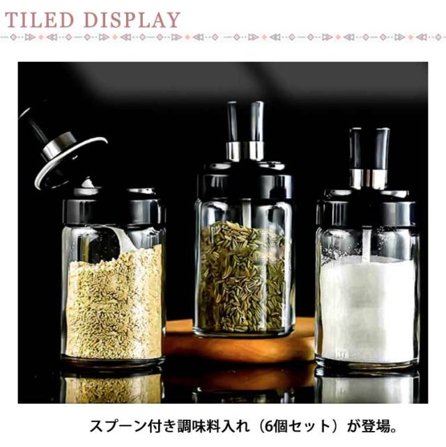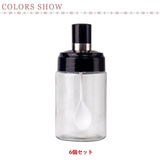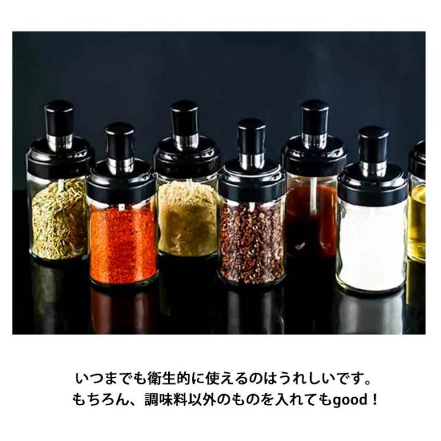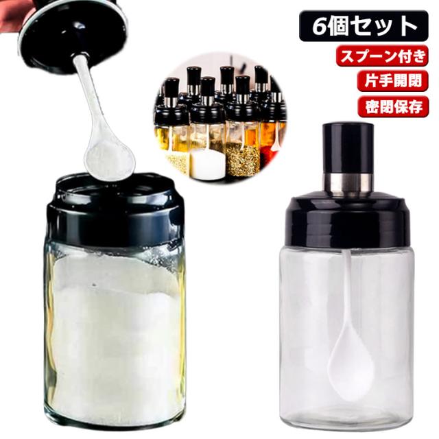 6個セット 調味料入れ スプーン付き 調味料ポット ガラス製 塩入れ 砂糖入れ スパイスジャー 使いやすい おしゃれ 収納 保存 湿気防止 調味料容器 スパイスボトル 調味料ケース キャニスター 密閉容器 スパイス入れ 塩 砂糖 新生活 詰め替え 片手開閉 送料無料