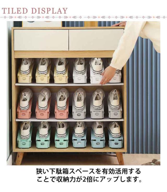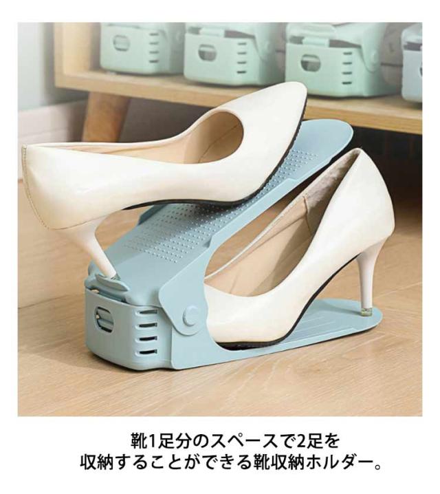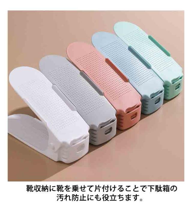 | 【14個組】【靴ホルダー】【省スペース】【選べる7色】 靴1足分のスペースで2足を収納することができる靴収納ホルダー。 狭い下駄箱スペースを有効活用することで収納力が2倍にアップします。 3段階の高さ調節付きなので、高さのある靴にも対応可能です。 ローヒールやスニーカー、ハイヒールまで様々な高さの靴に合わせて収納できます。 表面は凹凸のあるすべり止め付きのデザインです。靴のずれ落ちを防止します。 靴収納に靴を乗せて片付けることで下駄箱の汚れ防止にも役立ちます。 | |