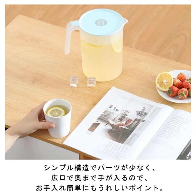 | 冷蔵庫の棚に置きできる冷水ポット 良い品質のPPを採用して作られたこの冷水筒は丈夫で地面に落ちても割れない、そして長く使えて耐久性も優れています フタは片手でラクに開閉でき、分解して洗えるので衛生的です シンプル構造でパーツが少なく、広口で奥まで手が入るので、お手入れ簡単にもうれしいポイント。 暑い季節には水出しアイスコーヒーやお茶などでのご利用も大変便利です。 | |