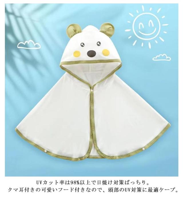 UVカット ベビーポンチョ ベビーマント ベビー ケープ UV対策 接触冷感 ひんやり ベビーアウター くま耳付き フード付きケープ 新生児 赤ちゃん 日よけ お出かけ 紫外線対策 日焼け防止 夏 夏用 羽織り 男の子 女の子 ベビー服 冷房対策 かわいい 出産祝い 送料無料