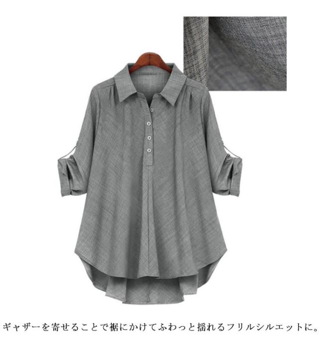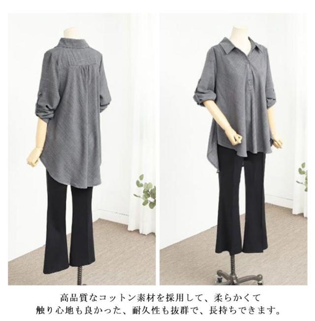 フレア シャツ チュニック レディース 春 長袖 ロングシャツ フレア トップス チュニック Aライン 襟付き プルオーバー ドロップショルダー 体型カバー ゆったり シャツブラウス ドルマンシャツ 無地 ボタン付き 30代 40代 送料無料