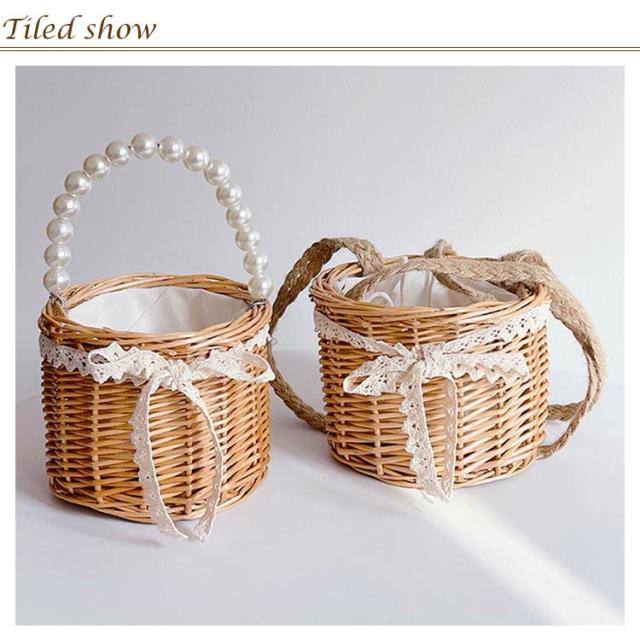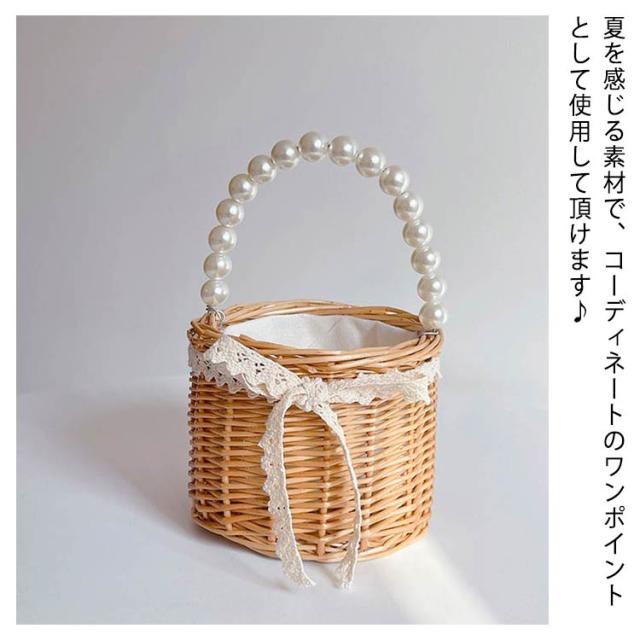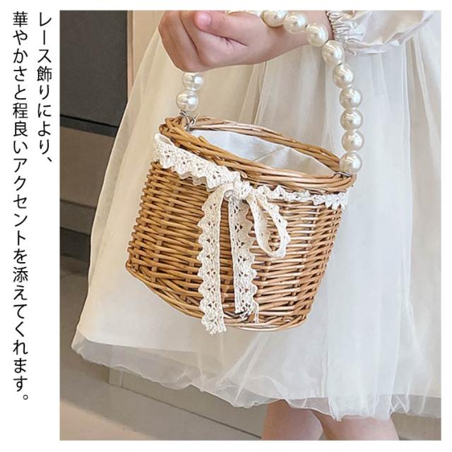 かごバッグ キッズ 女の子 ショルダーバッグ 肩掛け ハンドバッグ 手提げ 小さめ 丸い 浴衣 カゴバッグ 巾着 軽い 小さめ 子供 可愛い ナチュラル カジュアル 編み込み サマーバッグ 夏バッグ レース パール 子ども用 ジュニア 結婚式 卒業式 春夏 ギフト プレゼント