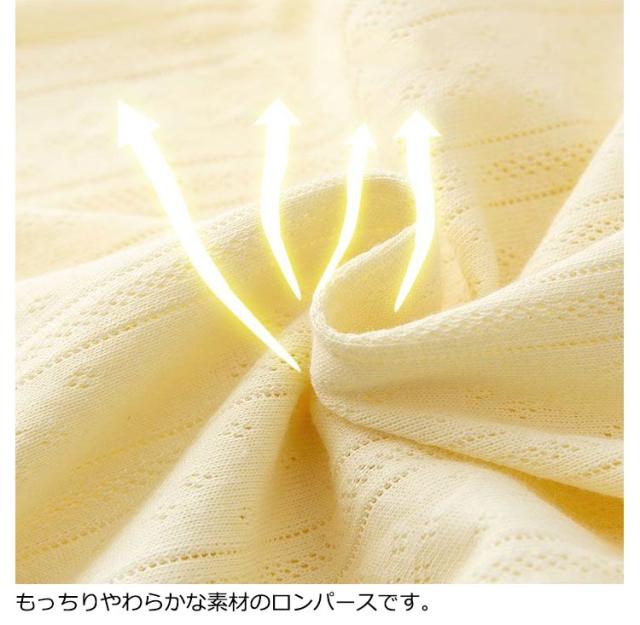 | 普段着として、部屋着としても可愛く使えます。 細身ですが、伸縮性のある素材でストレッチが効いていてとてもよく伸びます。 もっちりやわらかな素材のロンパースです。 出産祝いやちょっとしたプレゼント、お出かけ用におすすめです。 | |