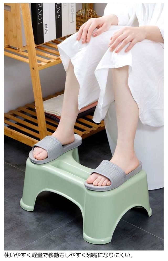 | 洋式トイレのカーブに合わせてピッタリフィットしやすい、丸いくぼみ。 お子様のトイレトレーニングから便秘解消、 妊婦さんのトイレやご高齢のトイレまで対応した、踏ん張れるトイレステップ。 使いやすく軽量で移動もしやすく邪魔になりにくい。 | |