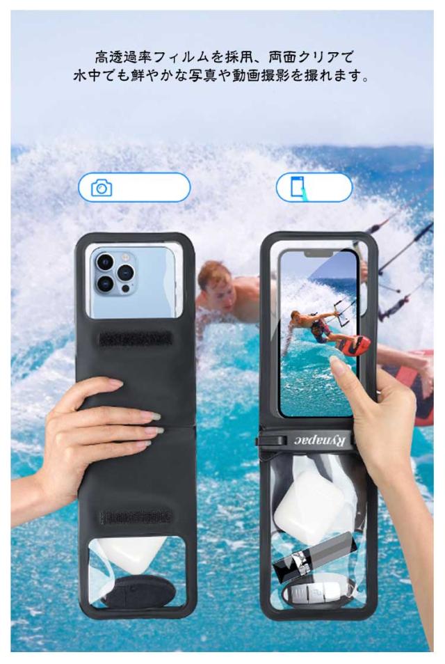 | 防水ポーチとして貴重品や財布・コインも持ち運び出来る便利なスマホ用防水ケース! 国際規格IPX8を取得、水深20mで30分間の防水が可能という完全防水ケースです! 防塵、耐寒、耐傷、耐圧に強いTPU素材で作られました。 高感度かつ高透明度を持つ高品質TPU素材を採用し、装着後もデバイス本来の見た目を損ないません。Face ID認証も一瞬ででき!大切な思い出を綺麗に残すこともできます。 防水スマートフォンケースは一年中使えて、夏以外でも大活躍するんです。 スキーや温泉・海・お風呂・水遊び・プールなどアウトドアに最適 | |