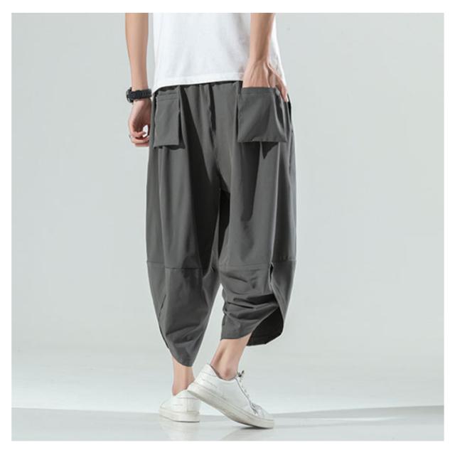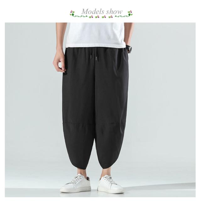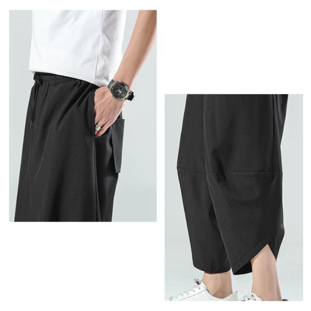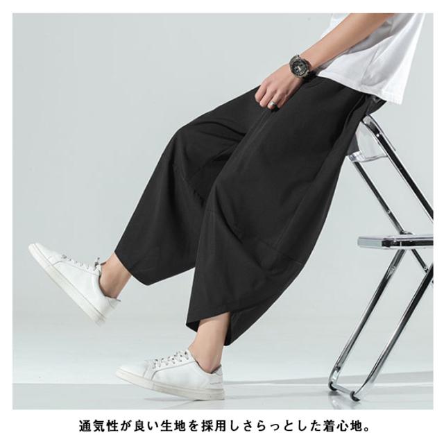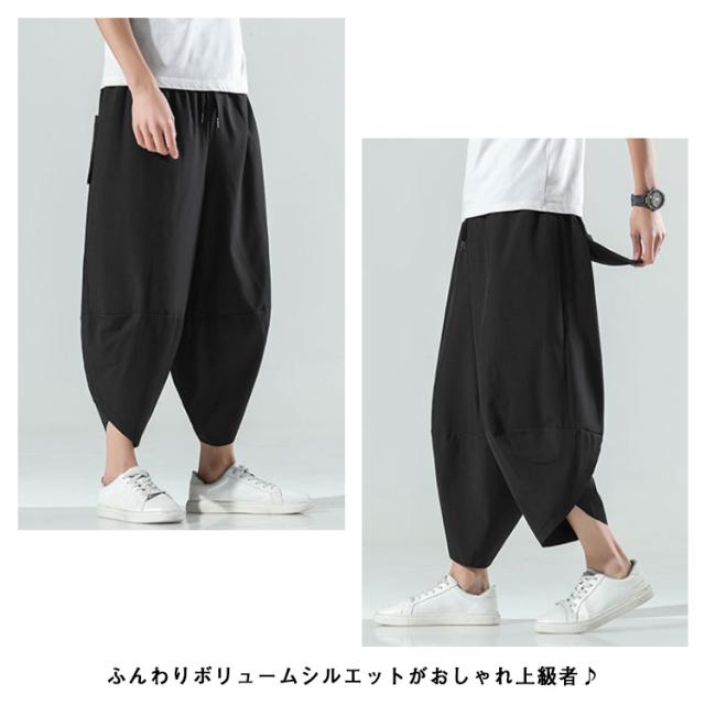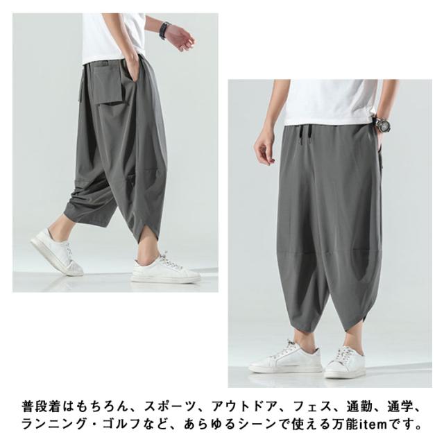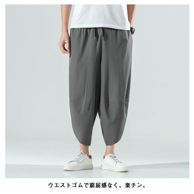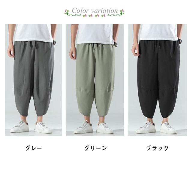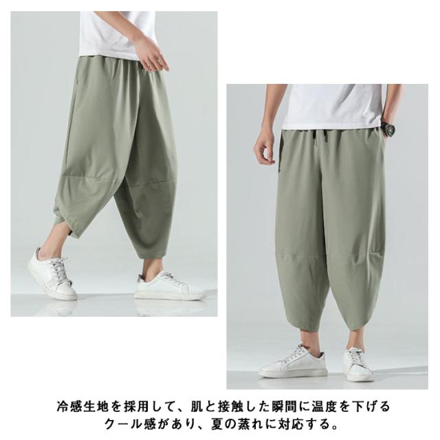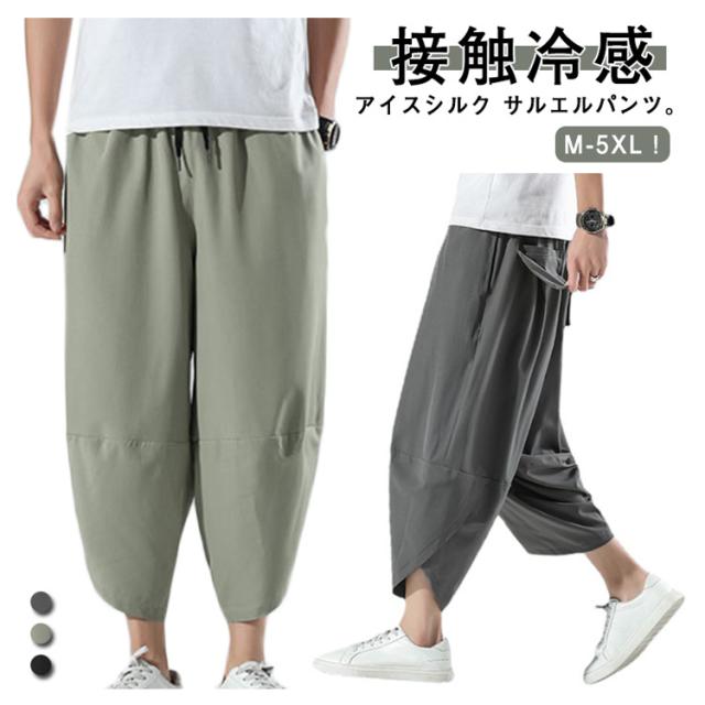 M〜5L サルエルパンツ メンズ アイスシルク 接触冷感 パンツ 涼しい ゆったり 冷感パンツ ひんやり 涼しい ワイドパンツ バルーンパンツ クロップドパンツ アンクル丈 夏 薄手 ゴルフパンツ