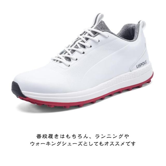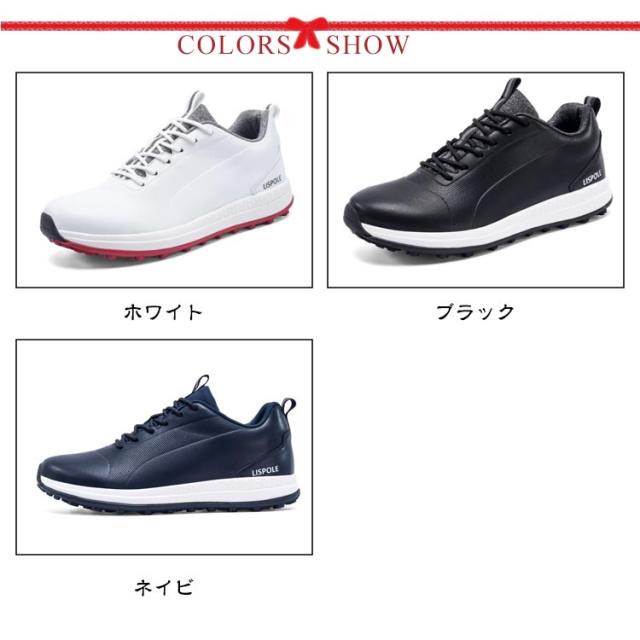 ゴルフシューズ メンズ スパイクレス レースアップ式 ゴルフ シューズ スニーカータイプ ローカット 耐滑 滑り止め 軽量 カジュアルシューズ ウォーキングシューズ スポーツシューズ ランニング ジョギング シューズ 靴 ネイビー 紺 白 大きいサイズ