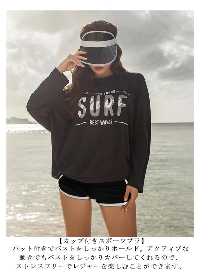 | お得な体型カバー水着4点セット。 【おしゃれなデザインのラッシュガード】長袖タイプでしっかり紫外線をカットしてくれます。ゆったりとしたシルエットで上半身の体型をしっかりカバー!レギンスやショートパンツとの組み合わせカラーで体型もスッキリ見せてくれます。 【カップ付きスポーツブラ】パット付きでバストをしっかりホールド。アクティブな動きでもバストをしっかりカバーしてくれるので、ストレスフリーでレジャーを楽しむことができます。 【紫外線カット率99.9%!日焼け対策に嬉しいレギンス】足首までしっかり日差しからガード!股上の深いハイウエストデザインで腰周りからしっかりフィットし、ボディラインをすっきり見せ。 【陸でも水の中でも切れる水陸両用】水陸両用なので夏のプールだけでなく、フィットネスでも使えてオールシーズン大活躍! | |