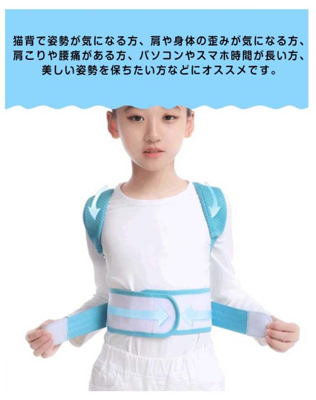 | 正しい姿勢で理想のボディへ!子供用 背筋矯正ベルト 猫背矯正サポーターは、自然に背筋がピーンと伸びた正しい姿勢へ導きます。 猫背の改善とともに、首こりや肩こりを解消し、近視予防など体のあらゆる健康面が改善されます。 猫背はお腹に脂肪がたまりやすく、肩こりや腰痛になるだけでなく、見た目の印象を悪くする。 人体工学的にデザインされた猫背矯正ベルトは、肩を開いて背筋を伸ばし、イメージを高めて魅力的な姿勢に仕上げます。 メッシュ素材で、通気性と快適性が向上します。 マジックテープを使用し、脱着便利で体型や好みの諦め加減に合わせて自由に調整可能。 猫背で姿勢が気になる方、肩や身体の歪みが気になる方、肩こりや腰痛がある方、パソコンやスマホ時間が長い方、美しい姿勢を保ちたい方などにオススメです。 | |