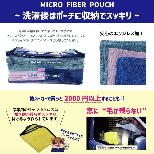 【ながら洗車】 Micro Fiber Pouch『拭き上げをデザインする』マイクロファイバークロス 洗車 マイクロファイバー 洗車タオル ポーチセット 中判タオル2枚 マイクロファイバー12枚 ガラス用タオル1枚 入り