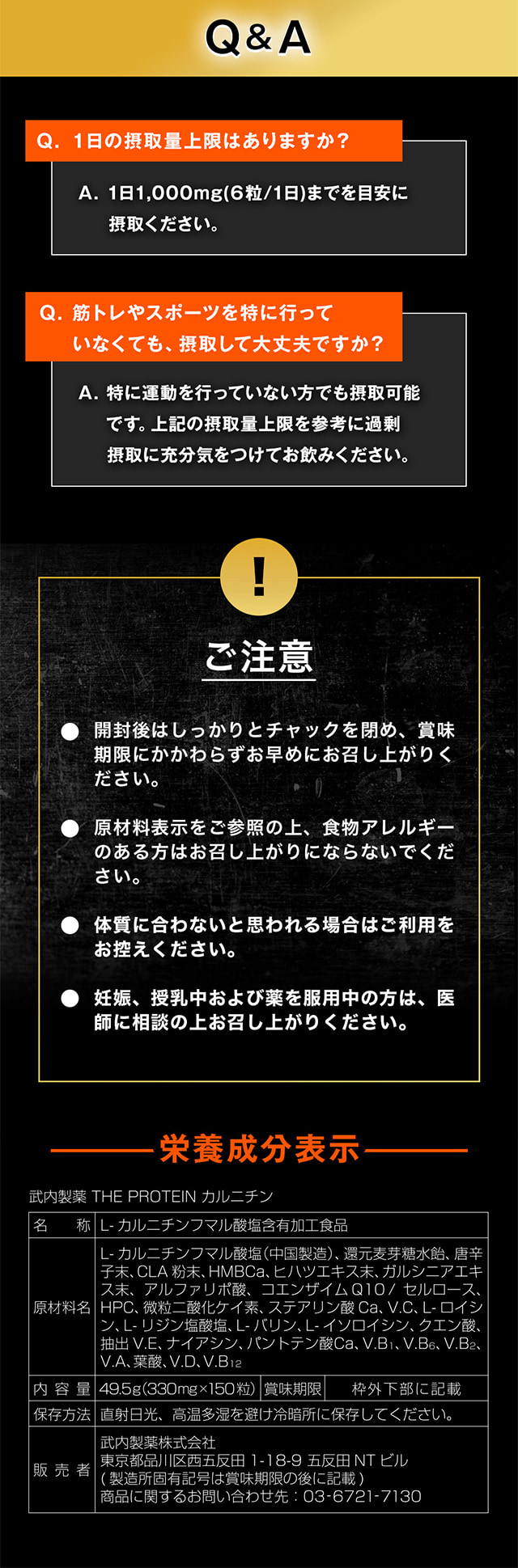 L-カルニチン カルニチン 330mg 150錠 ザプロ サプリメント サプリ 健康 ダイエット 男性 女性 錠剤 カプセル 栄養 補給 運動 トレーニング アミノ酸 ボディメイク 武内製薬 THE PROTEIN 送料無料 GMP認定工場
