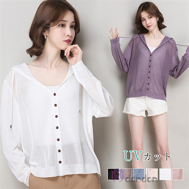 カーディガン レディース フード付き UVカット 薄手 ニットカーディガン ニットジャケット アウター 紫外線対策 春 夏 冷房対策 お出かけ