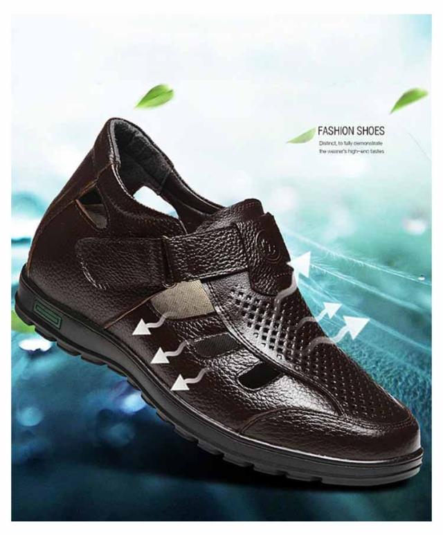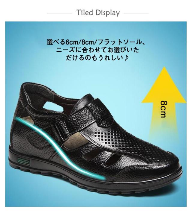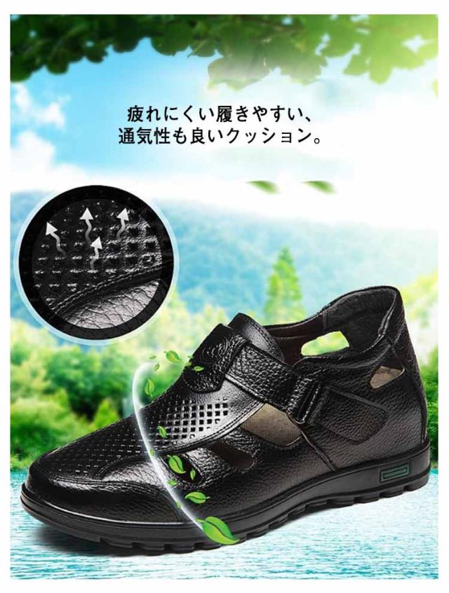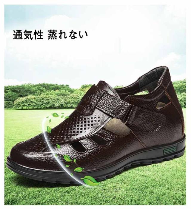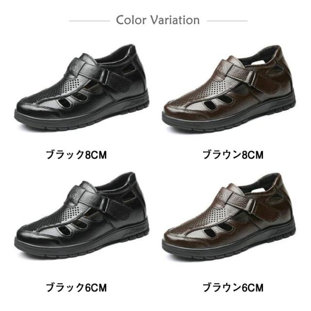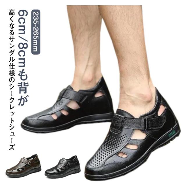 シークレットシューズ サンダル カジュアル メンズ メッシュ 夏 サンダル 8cmアップ 6cmアップ 通気性 蒸れない 紳士 靴 牛革 蒸れない 甲高 ゆったり幅広 歩きやすい 滑り止め 通勤 オフィス ビジネス 大人 男性 オープンストラップ 快適 敬老の日 ギフト 送料無料