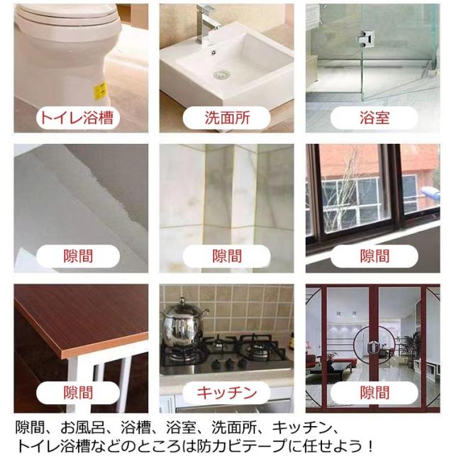 | IHコンロ周りのすき間にピタッと貼って汚れや傷を防止するテープ。 「薄い」「幅広」「剥離紙がない」ので貼りやすく、伸縮性があるのでしっかりフィットして剥がれにくい! 汚れカスが入り込まないのが嬉しいポイント。 はがすだけできれいになるので、キッチン周りをきれいに保つことができます 隙間、お風呂、浴槽、浴室、洗面所、キッチン、トイレ浴槽などのところは防カビテープに任せよう! | |