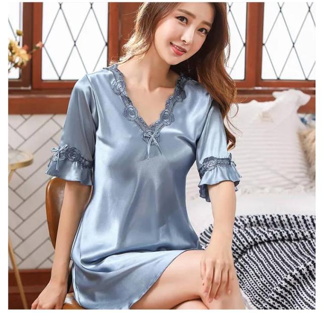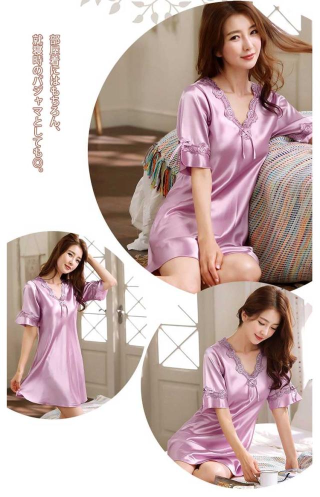 パジャマ レディース ワンピース シルク ルームウェア 春夏用 汗取り 接触冷感 接触冷感 吸汗速乾 UVカット 涼しい 透けない 冷感 夏 インナー 寝間着 部屋着 Vネック ナイトウエア 送料無料 プレゼント ギフト M L XL 2XL 3XL