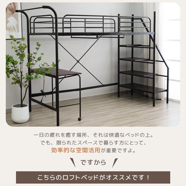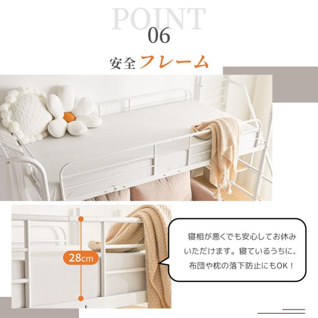 「クーポン配布中」ロフトベッド パイプベッド シングルベッド 耐震ベッド コンセント付き デスク付き 子供ベッド ハンガーポール付き収納付 段階式 二段ベッド 子供部屋 スチール 耐震 耐荷重150kg 北欧風