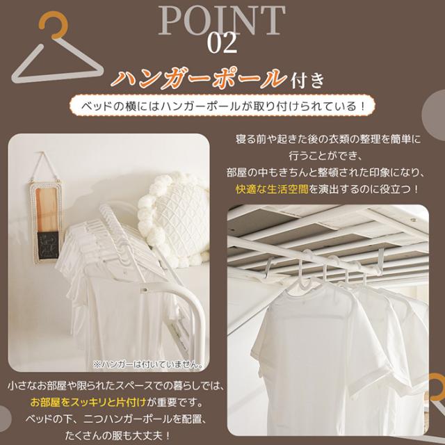 【ハンガーポール付き】ベッドの横にはハンガーが取り付けられている!ベッドの下、二つハンガーポールを配置、たくさんの服も大丈夫!注:ハンガーは付いていません。